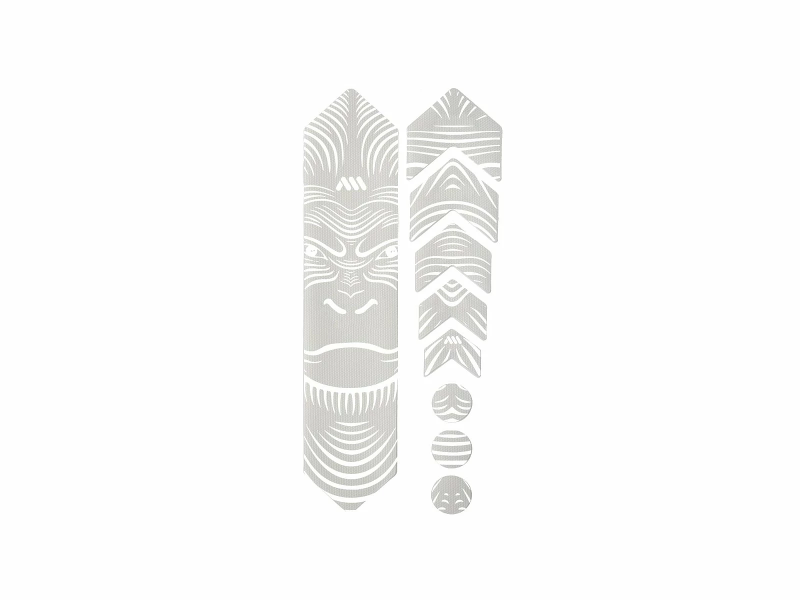 - 9 parts for a universal protection system: 1 big part for the down tube; 5 arrow parts for extending the down tube protection or for the chainstay or for top tube; 3 circles for cable wear protection.