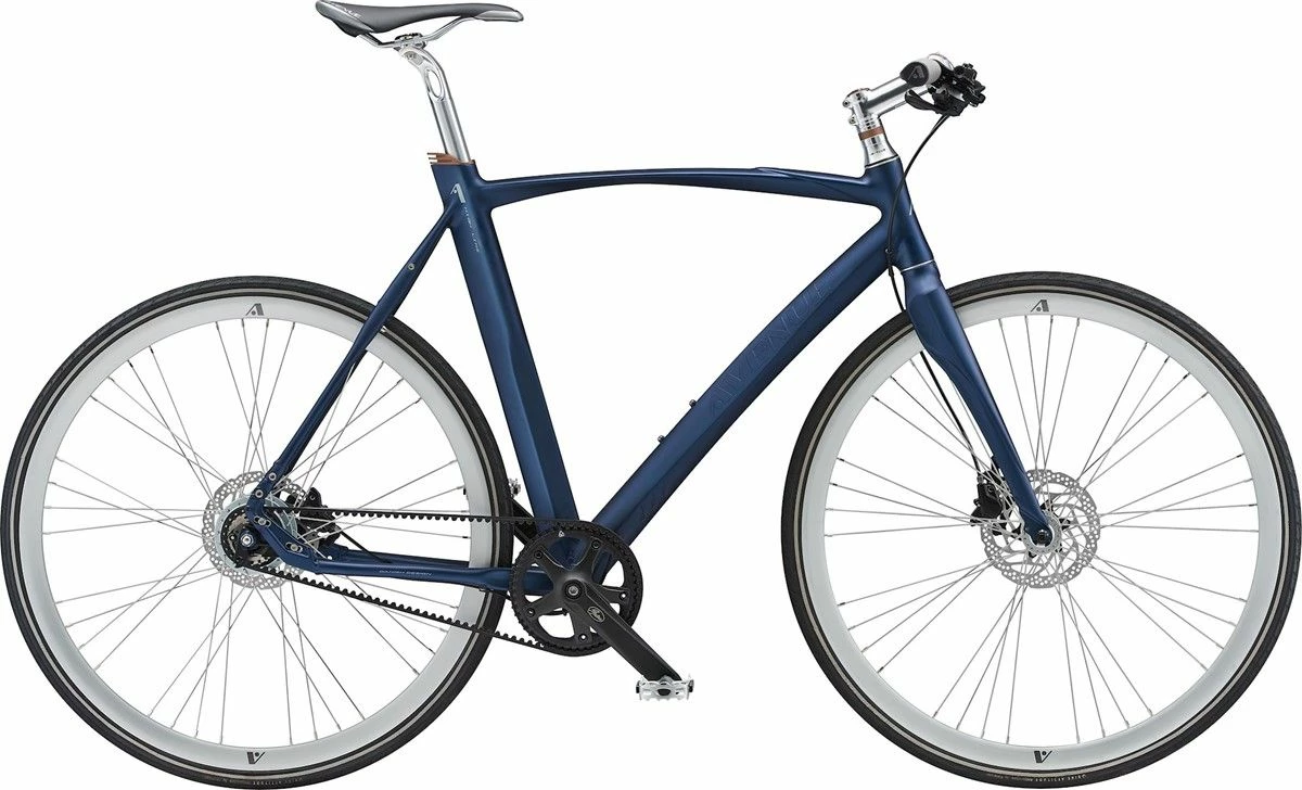 Avenue High Line Gent er udstyret med et sort Gates 50T kranksæt med GatesCDN-CT1124XCN kasette og Gates carbon remtræk samt Shimano tommelskifter på styret.