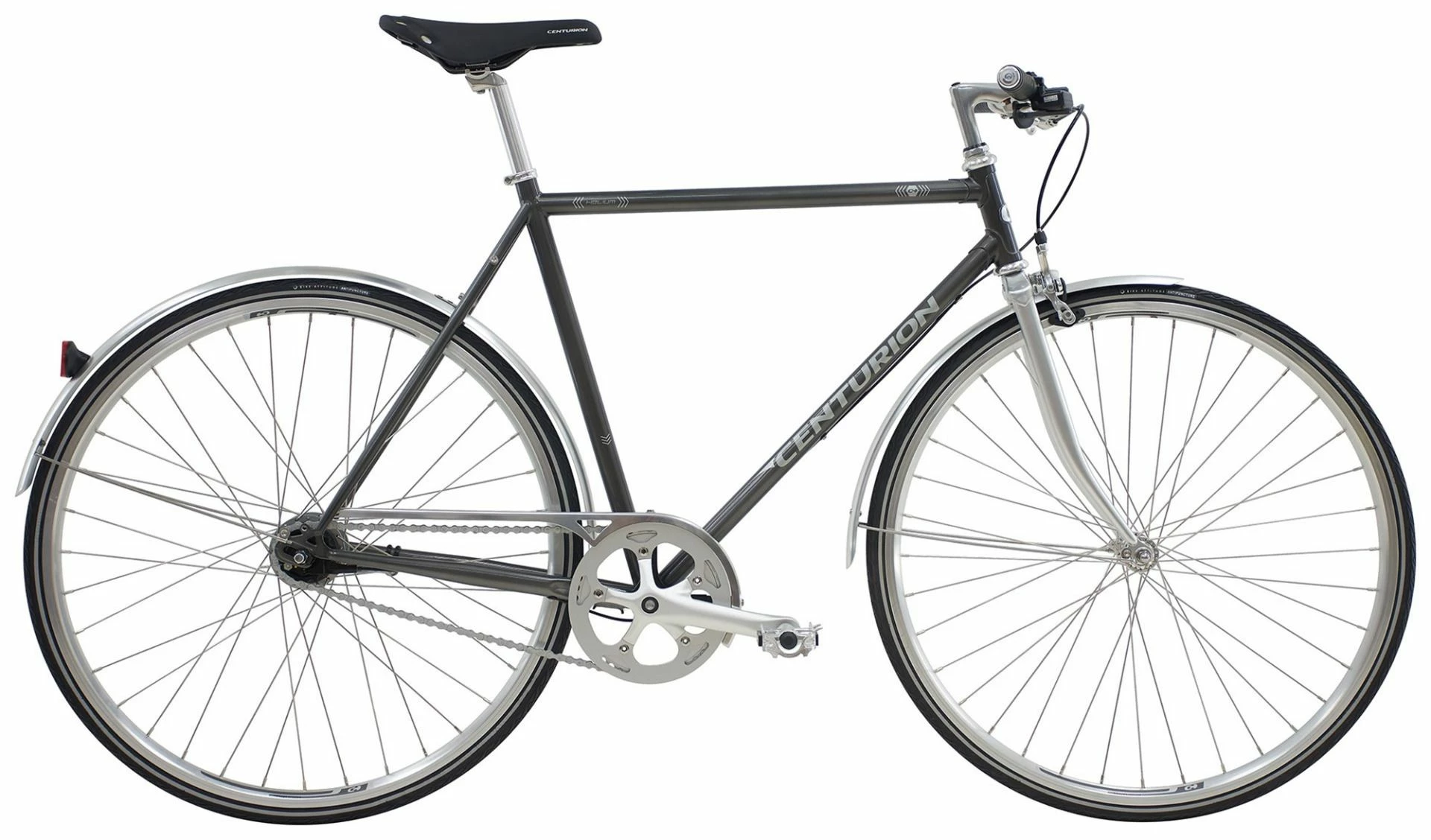 Centurion Helium er bygget på et klassisk Hi Tensile stålstel med forkromet stål forgaffel monteret med et matsølv 46T aluminiums kranksæt og smalle 700×28 hjul med dæk fra Bike Attitude Antipuncture by Panaracer.
