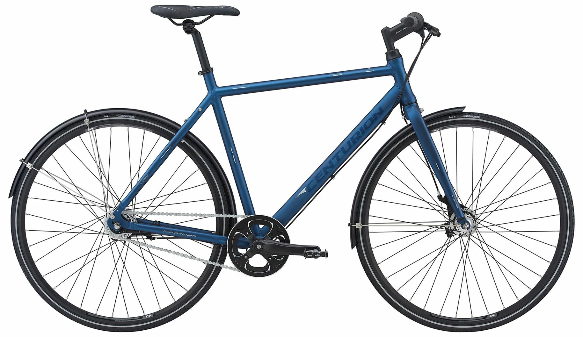 Centurion Ultimate er bygget på et aluminiums stel monteret med et aluminiums 44T kranksæt og aluminiums frempind samt styr og sadelpind.