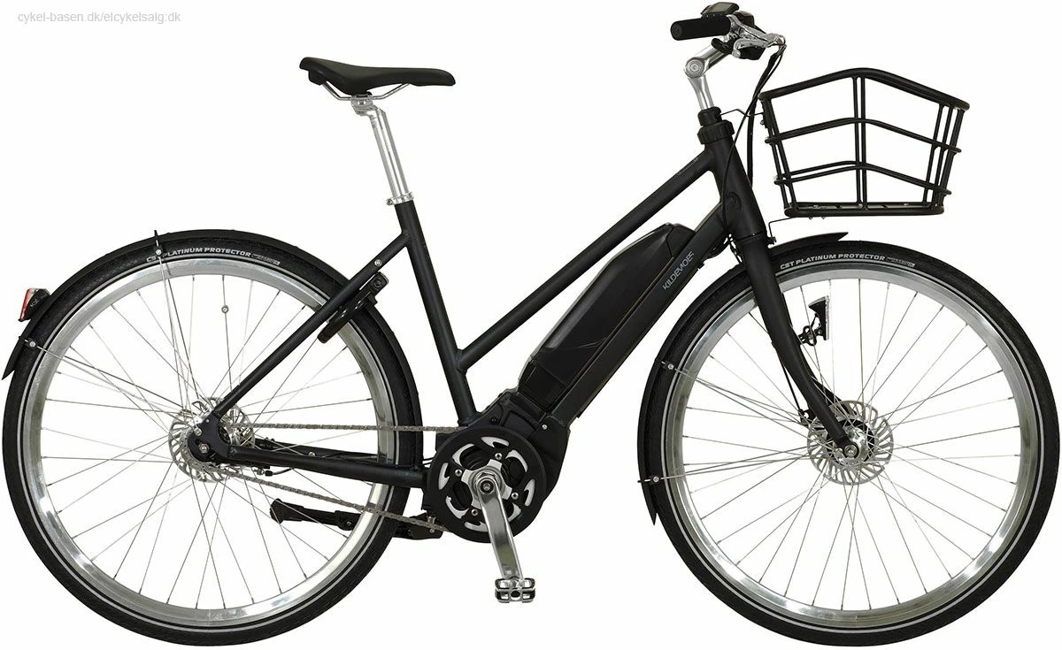 Kildemoes Chic elcyklen er bygget på et aluminiums stel med stål forgaffel med batteriet placeret på underrøret.