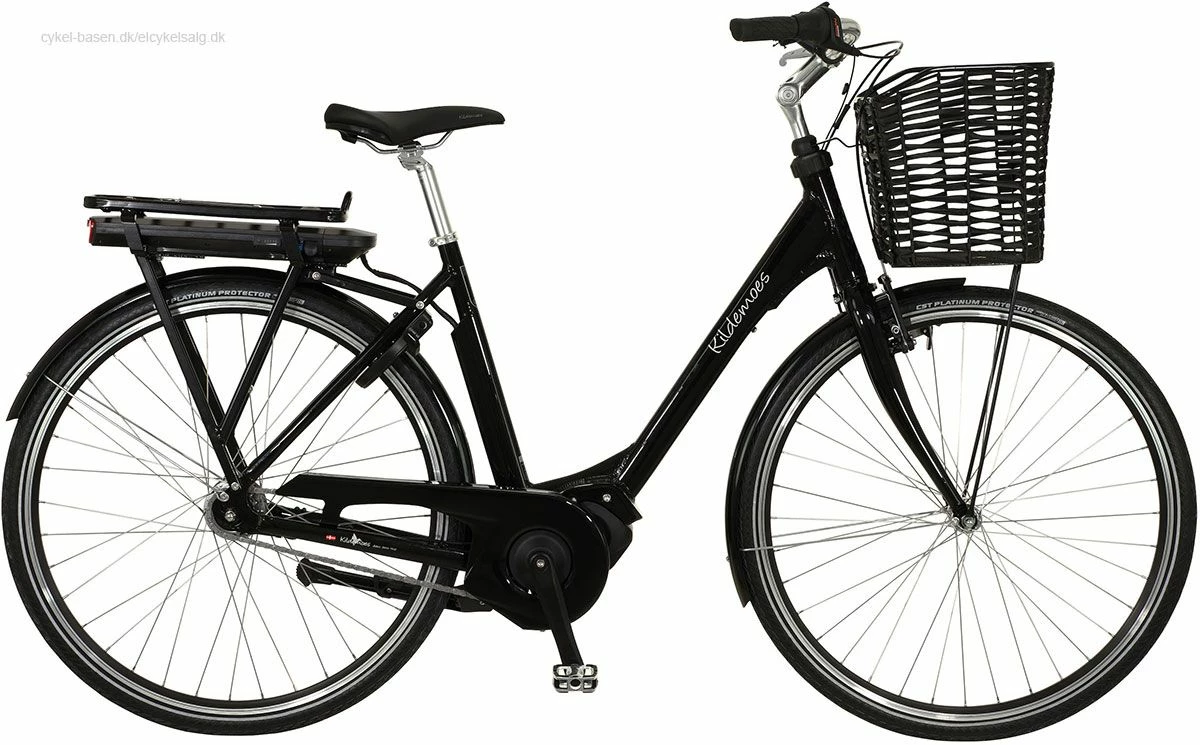 Skærmene til hjul er i aluminium og kædeskærm er i plast og der sidder en Kildemoes komfort sadel på elcylen samt ergonomiske skiftegreb.