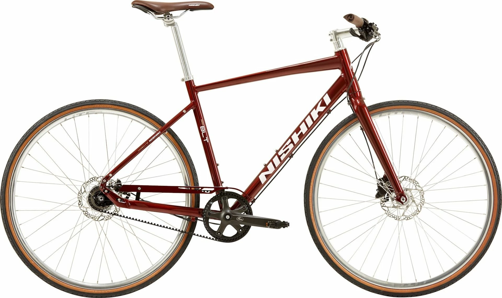 Nishiki Pro leveres med sportsadel i natur materiale samt ergonomiske greb ligeledes i naturmateriale.
