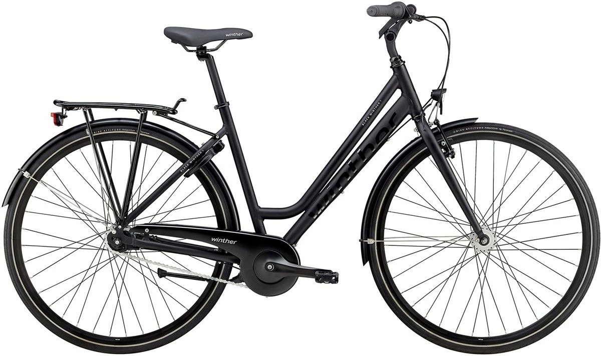 Winther 1 cyklen til damer er bygget på et aluminiums stel med en lav indstigning og mulighed for at indstille kørestilling, med den justerbare aluminiums frempind.