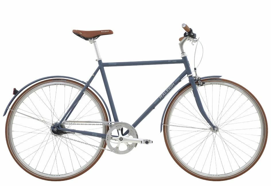 Cyklen leveres med indfarvede skærme til hjul og kæde samt en naturfarvet sadel med nitter og naturfarvede greb.