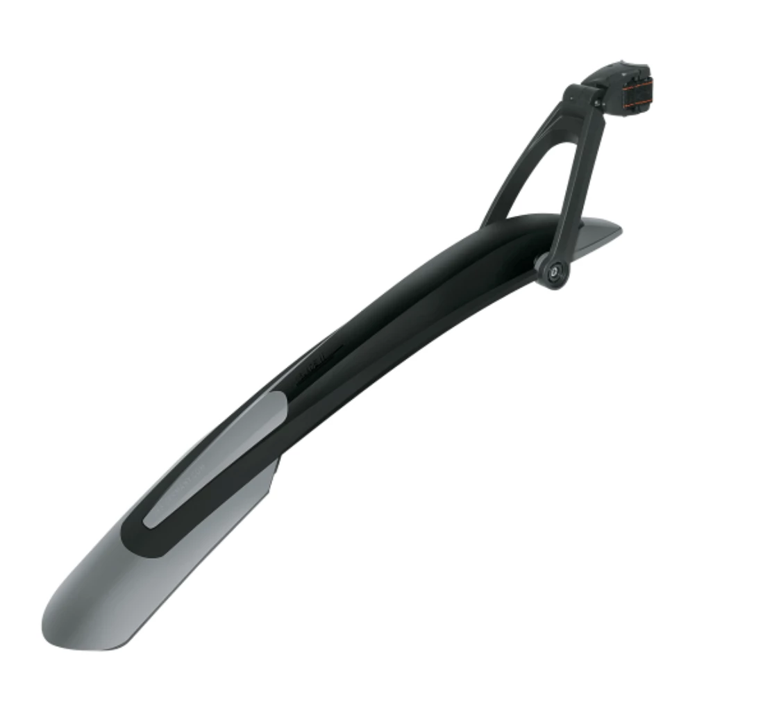 The high-quality 2-component dirtboard for the rear wheel of mountain and trekking bikes. Due to the quick-release mounting, the dirtboard can be fitted to almost any seat post and optimally adjusted to the wheel using the 2-joint technology.”
