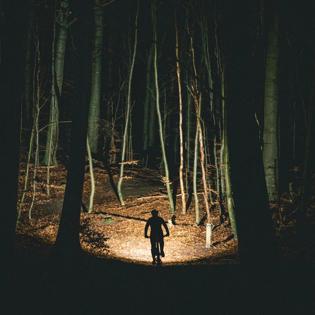 ”Lygten har en super god spredning af lyset, så at man kan nøjes med at køre med én lygte på styret og stadig se udgangen af svingene på sporet”