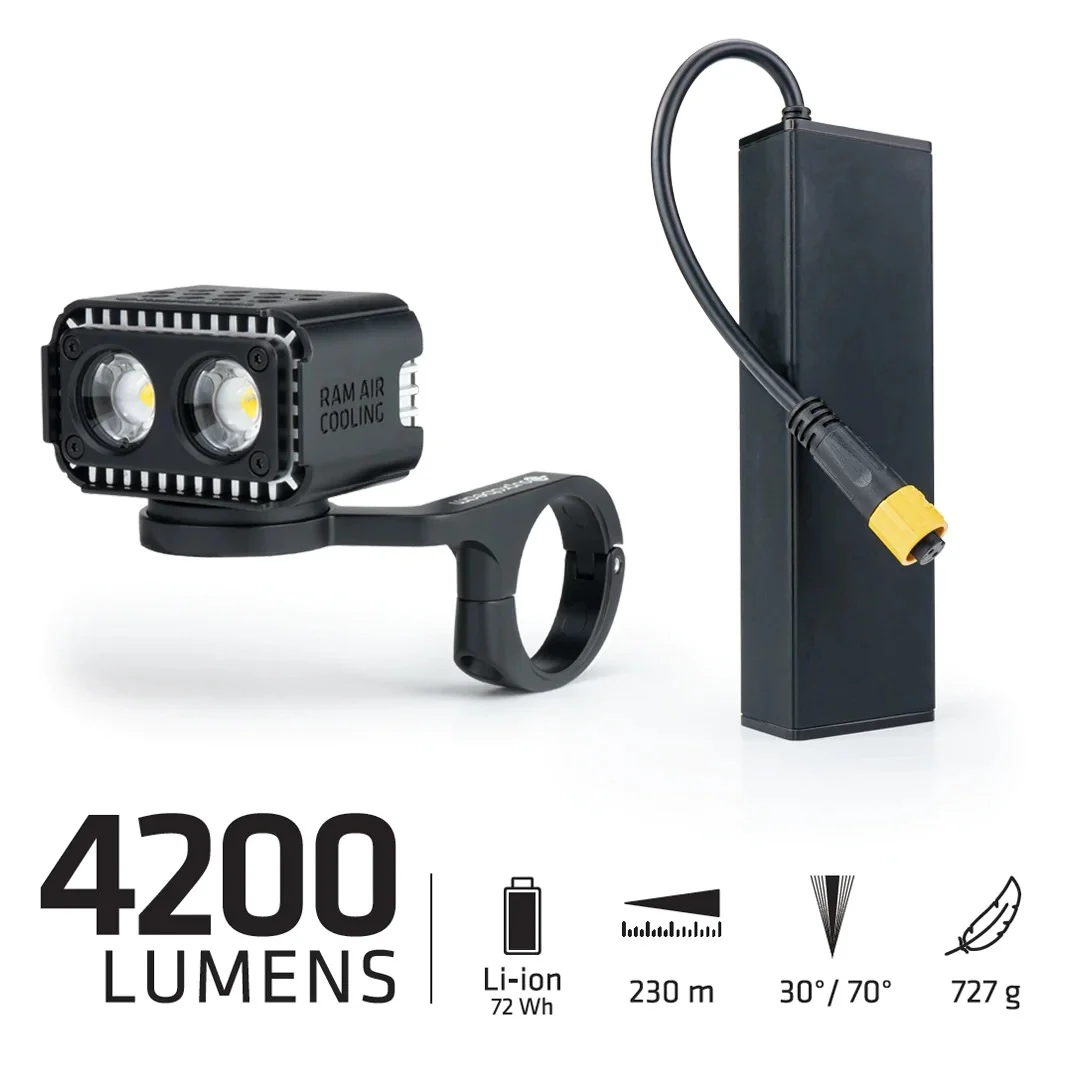 Med 4200 lumen skærer B6r gennem mørket som en kniv, og du kan køre de hurtigste spor som var det i dagslys. Monter Powerpack tasken på stellet og klik lygtehovedet på plads, tag en dyb indånding og forbered dig på sporet foran dig, klik i pedalerne og GO!