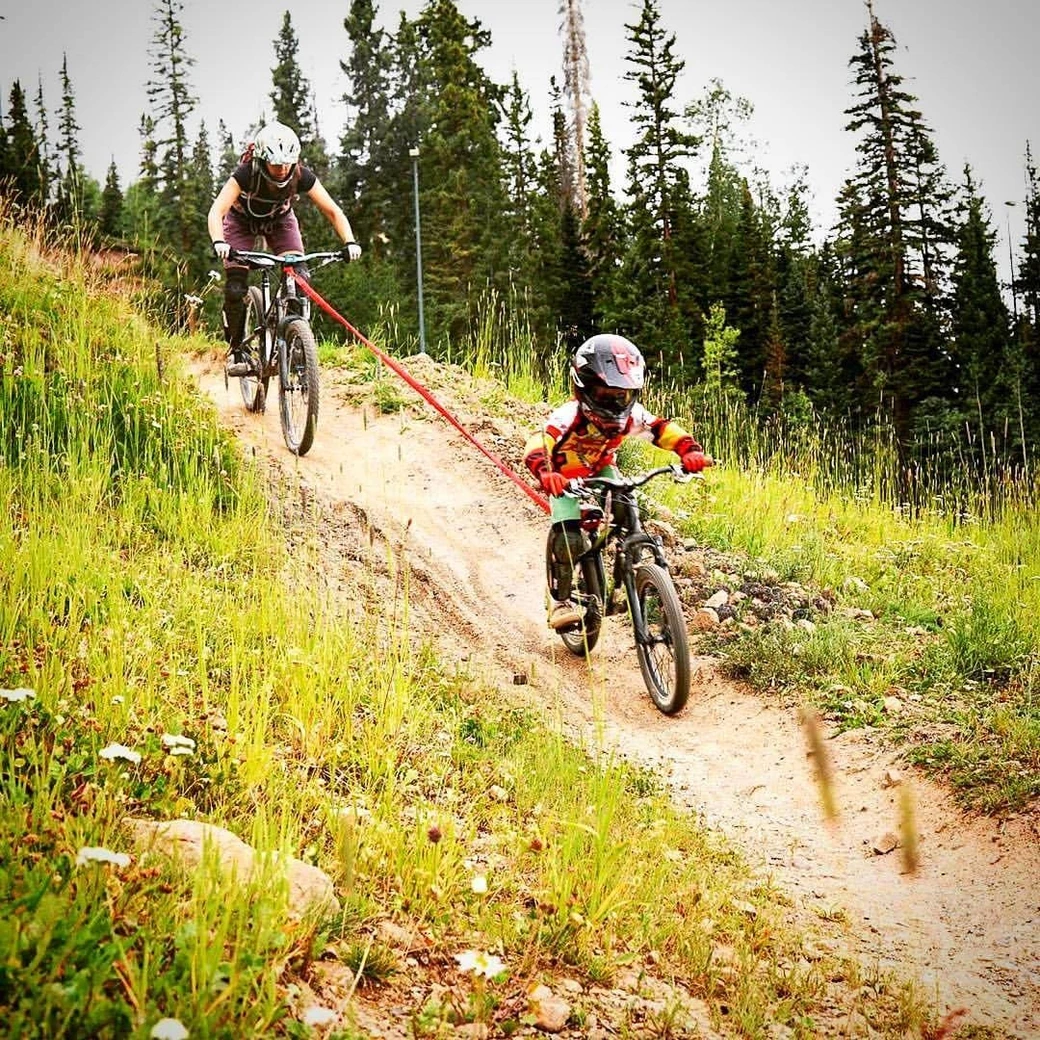 This simple & lightweight tow strap works great stand alone with no accessories. It contains a high stretch bungee cord inside an ultra strong hollow webbing. It only weighs 5 oz. & has been designed to keep the strap from dangling to the ground/wheels while adding a very soft feel to the second rider so there is never a harsh jerk at the end. At max length it is 15’/180″ and only 4.6’/56″ relaxed. This will help you tackle larger rides together with younger or weaker riders. Rated One Size Fits All for all riders of any age, size or weight up to 500lbs. HIGHLY recommended is the Quick Loop add on Accessory for built in storage & fast easy connections to the trailing bike.
