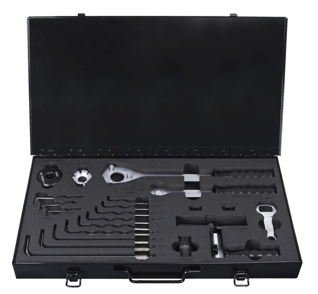 - Unique to the tools included in the 100th Anniversary Set are aluminum handles in a black anodized finish. The tools are organized in a laser-cut SOS foam tool tray for a perfect fit in the matching black steel case, which also features our 100th-anniversary logo on the top. Inside you will find a great selection of bike tools that will cover most basic service operations on a bicycle. And yes, a bottle opener is included.