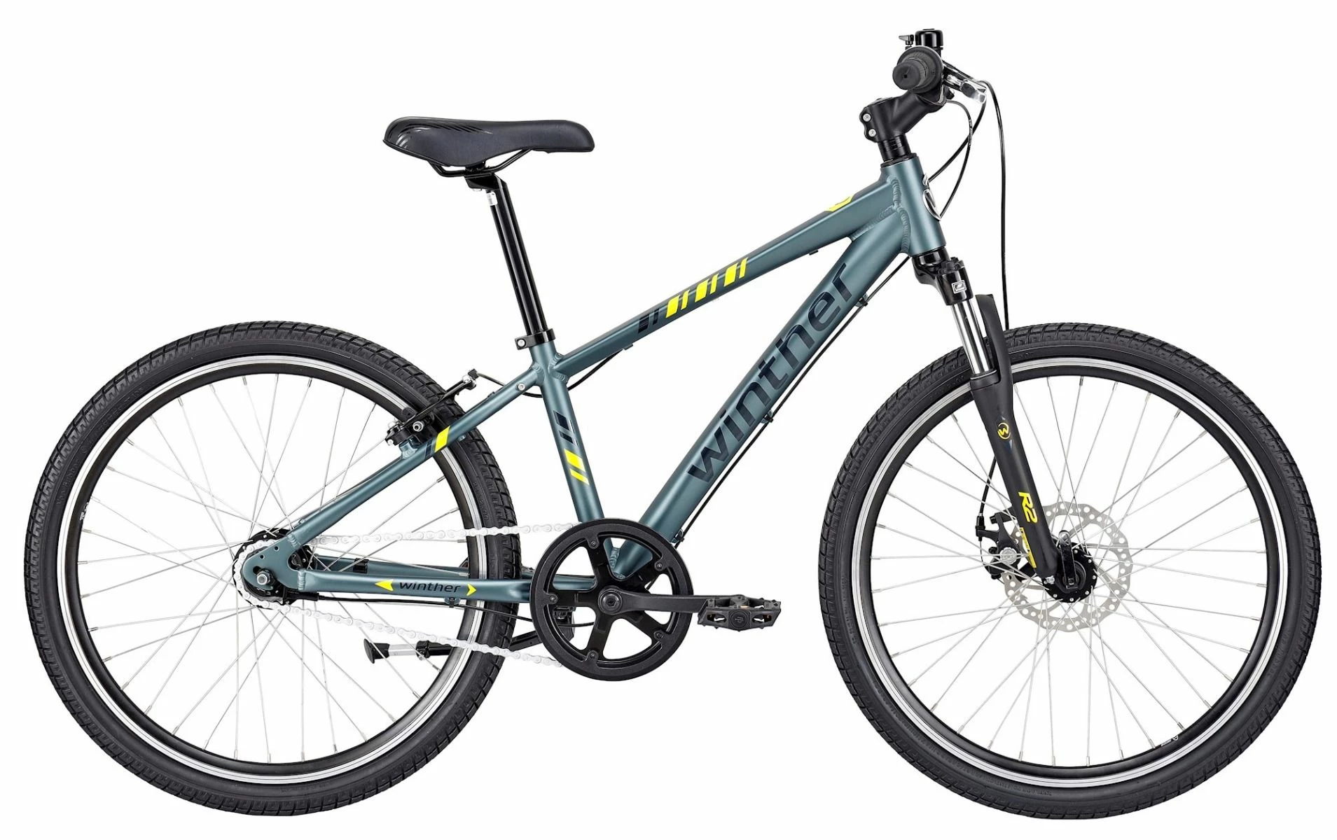 Winther R2 Sport cykel til drenge med affjedret forgaffel og 7 Shimano Nexus gear samt fodbremse og en ekstra mekanisk skivebremse foran.